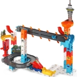 Experience the adrenaline with the VTech Blesk Marble Run – Skyscraper. The marbles race through bends, spirals, and across bridges; at the end an electric train loads them and the elevator sends them back to the top. Unlimited building possibilities, music and wacky sounds, 143 pieces and 10 marbles for creative fun for the whole family.