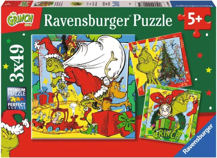 Ravensburger Puzzle Grinch 3x49 pieces brings joy to children and adults with three different images, great quality, and captivating design.