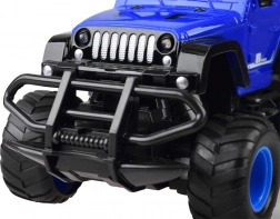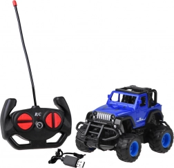 Discover endless play possibilities with this remote-controlled offroad car. Made from durable plastic in a combination of blue and black colors and equipped with sturdy rubber wheels, it is ideal for varied terrains. Thanks to the front lights that illuminate during driving, this car can easily navigate even in the dark.
