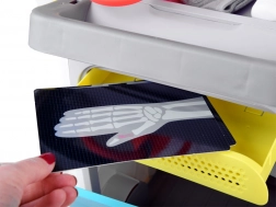 The kids’ medical trolley is a well-equipped set for little medics. With realistic features like an EKG/X-ray monitor with sound, a height chart, and organized tool storage, children easily dive into the role of a doctor. Quality plastic design and easy handling thanks to the wheels ensure hours of safe, creative fun.
