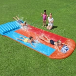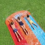 The Bestway triple-lane water slide offers fun for all children over 3 years old. It's perfect for outdoor use and provides a 4.88-meter length for endless fun. Thanks to integrated sprinklers, the slide is always perfectly wet, ensuring smooth sliding. Water tunnels at the end of the slide bring the right touch of a big splash.