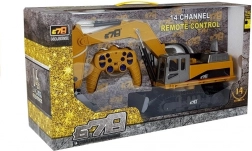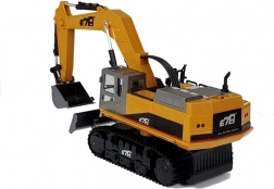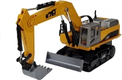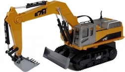 Yellow tracked remote-controlled excavator brings realistic construction fun with a movable arm and bucket, a rotating cab, and durable rubber tracks. 2.4G control ensures smooth range and reliable forward/backward and side-to-side steering. High-quality plastic, safe workmanship, and CE certification make it a great gift for kids aged 5 and up.
