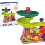 The spiral track returns the balls back into the mechanism, creating a continuous play cycle that captivates children for long minutes.