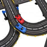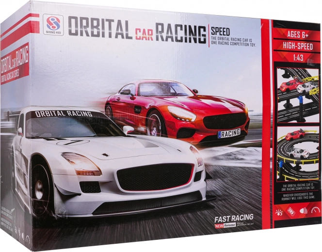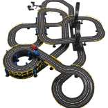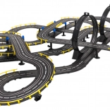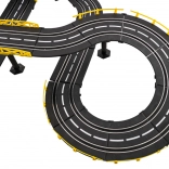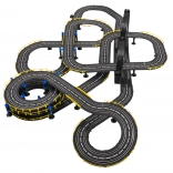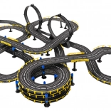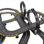 . | Large 1:43 scale racing track with two remote-controlled cars for children from 3 years. The individual building elements allow you to construct a track with sharp turns, spirals, and straight sections, all for maximum fun and increased excitement throughout the game. This unique set is an ideal toy for little motor-racing enthusiasts. The track is equipped with a lap counter. Powered by 220 V - 50 Hz mains electricity. |