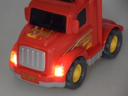 This large children’s tractor unit with trailer is ideal for little drivers and pilots. Thanks to the friction drive, just push the toy along a smooth surface and it will set off. On the roof of the cab there is a button that activates realistic engine and horn sounds and light effects, making play even more fun.