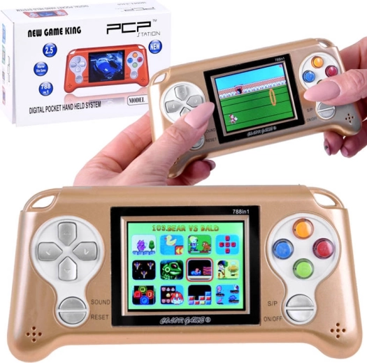 This excellent console game will satisfy even the most demanding video game enthusiasts. It comes with approximately 70 pre-installed games, or perhaps a few more, difficult to count them all (manufacturer claims more). The console features a modern look, a clear, bright and colorful LCD display that presents sharp images with vivid colors. The ergonomic button layout allows full control during gameplay. Thanks to its built-in sound button with adjustable volume, the console provides sensational sound effects.