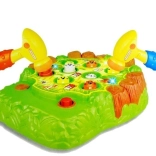 The game set includes a green-brown plastic board with colorful animal heads and two hammers, allowing two players to play simultaneously. The colorful graphics of animals and plants on the board will captivate every child, ensuring they never get bored of this game. Not only will children have fun, but they will also acquire new skills such as recognizing colors and sounds.
