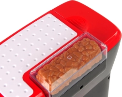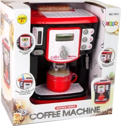 The black and red coffee maker is a truly interesting toy. Its appearance is styled after modern automatic machines, so it can confidently stand in the kitchen next to the real thing. The toy is equipped with a button to switch the type of coffee being “prepared” — Cappuccino, Latte, and Macchiato. On the left side of the coffee maker there is a tank, and after switching it with a button, water starts flowing from the machine! On the right side there are buttons simulating various coffee maker modes. The set is also equipped with an imitation of coffee beans in the hopper and a cup that can be filled by the coffee maker.
