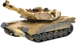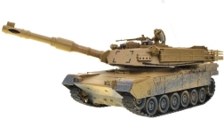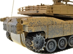 The M1A2 ABRAMS RC tank is a detailed model with refined workmanship, striking LED lighting, and realistic engine and firing sounds. Thanks to the rotating turret and rubber tracks, it handles smooth movement forward and backward, pivot turns on the spot, and precise maneuvers indoors.