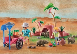 - Wombat cave, animal and human figures, plant-based treats, and accessories
