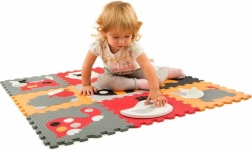 Foam puzzle with animal motifs in a gray and red combination is a great choice as a play mat for the kids’ room or living room. Each picture consists of five to eight removable parts, so children can practice fine motor skills and logical thinking. The mat is soft, safe, easy to maintain, and thanks to its insulating properties it protects against cold floors.