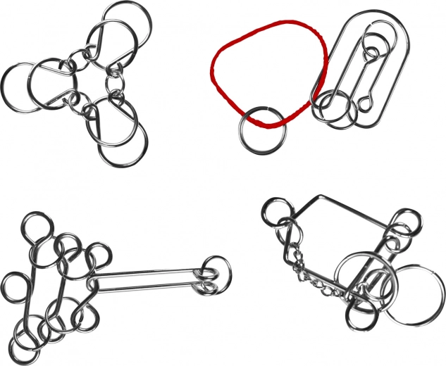 This set contains four unique metal puzzles that test your logical thinking and fine motor skills.