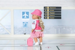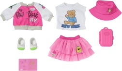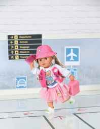 Treat your BABY BORN doll to the perfect travel outfit. This pink-themed set combines comfort and style—from the lightweight jacket with an iconic NY motif and the playful teddy bear T-shirt to the fluffy tulle skirt and comfy shoes. A cute suitcase and a passport are included for realistic play scenarios.