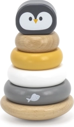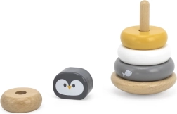 The wooden stacking tower Little Penguin POLARB is a classic toy for the youngest children, combining playful fun with early skill development. Children thread the individual pieces onto the central rod, sort them by size and color, and place the penguin head on top. This naturally practices fine motor skills, hand–eye coordination, and logical thinking.