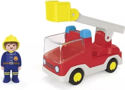 Delight little firefighters with this quality set: a fire truck with a rotating ladder and rescue basket, a tow hook, and a figure included. The ladder rotates 360°, moves up and down, and locks in three positions; the figure can be safely placed in the basket.