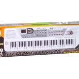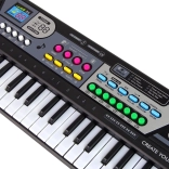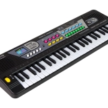 This keyboard has up to 49 keys, allowing easy and natural playing. The built-in microphone lets kids sing their favorite songs, which will certainly appeal to children who want to experiment with vocals. The buttons are easy to operate and the ergonomic design makes using the product very comfortable. The lightweight construction allows the toy to be carried around and placed on a table or desk, so your child can put on performances in any corner of the home. The external input jack enables listening to favorite songs.