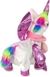 Our interactive plush unicorn is made from the highest quality materials and equipped with interactive features that will surely delight your child. Simply insert batteries, press the button on the leash, and the unicorn moves, wags its tail and head, and plays a friendly melody. This toy will undoubtedly enrich children's play with hours of fun.