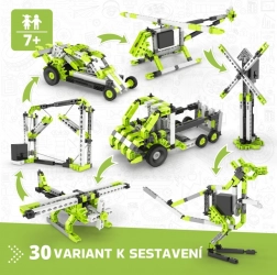 - 30 models in one box – vehicles, machines, and moving mechanisms.