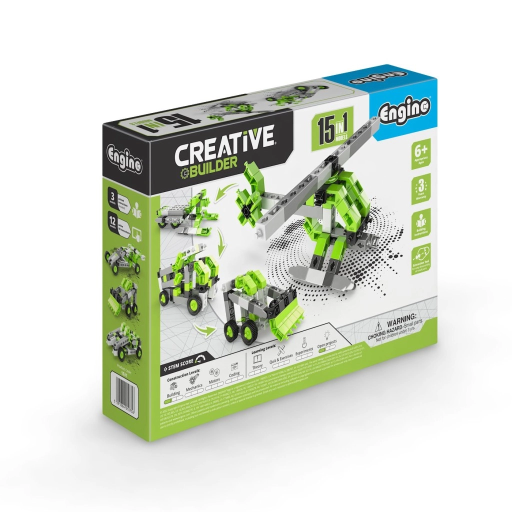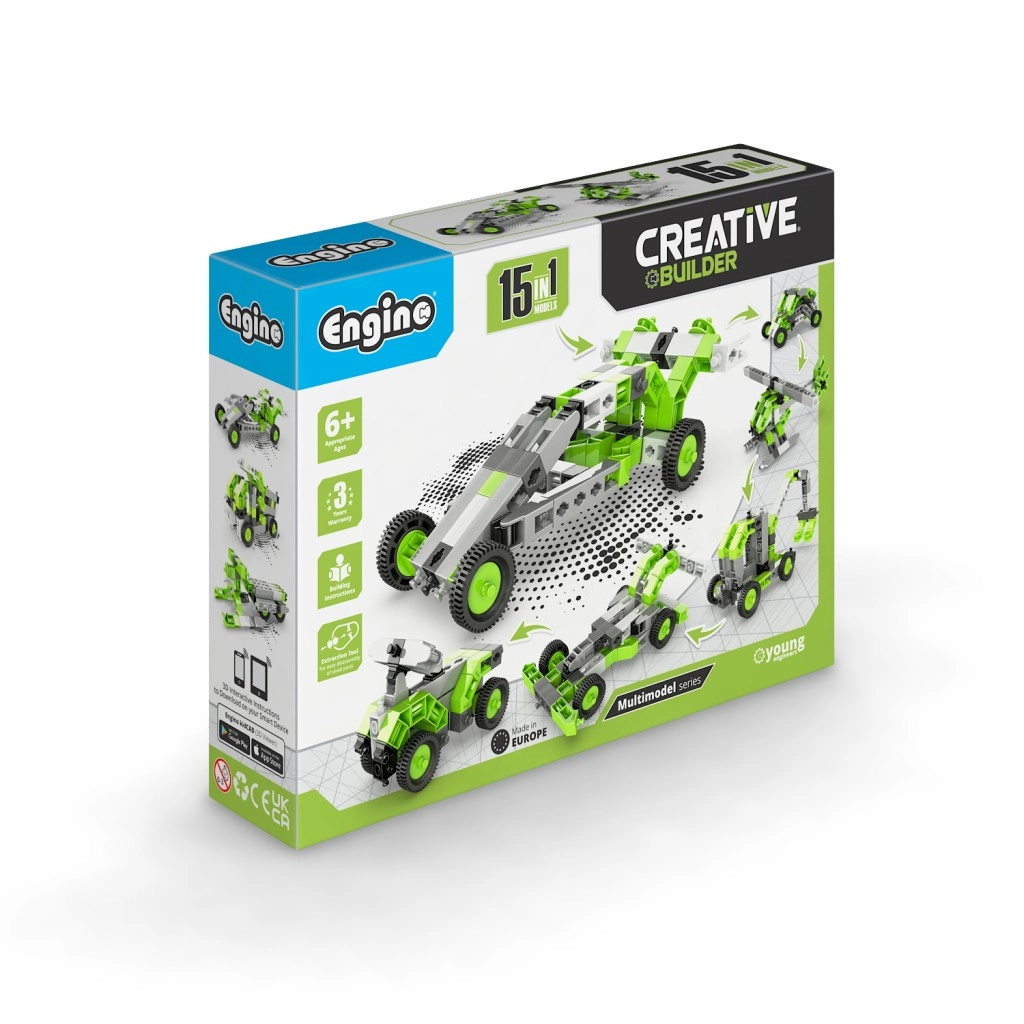 Discover the ENGINO Creative Builder 15-in-1 building set that develops children’s creativity, logical thinking, and manual skills from age 6. Build up to 15 different models from a single set using both the instructions and the interactive Engino kidCAD app with 3D viewing. Easy model rebuilding, high-quality workmanship, and compatibility with other Engino sets make this kit a perfect choice for young engineers.
