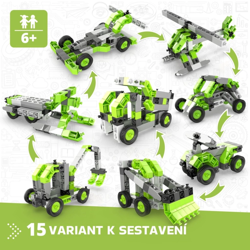 The Engino Creative Builder 15-in-1 kit brings kids hours of fun and learning. Thanks to the smart connector system, children can easily rebuild one creation into another and try out different mechanical principles. The intuitive Engino kidCAD mobile app in Czech shows models in 3D, so you can rotate, zoom, and build them step by step.