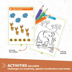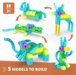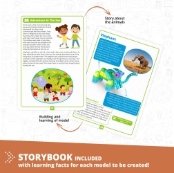 Engino Construction Set - Learning with Wild Animals offers children the opportunity not only to build up to 5 different models but also to discover interesting facts about animals. Learn through fun activities such as coloring pages, connecting the dots, or practicing math, all supported by an Augmented Reality app.