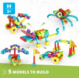 With this set, children can build various models, such as animals and cars. It includes a manual and a mobile app that guides you step-by-step through the building phases. The interactive Engino kidCAD® app allows viewing of models in 3D for better visualization.