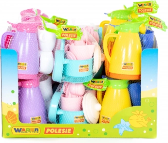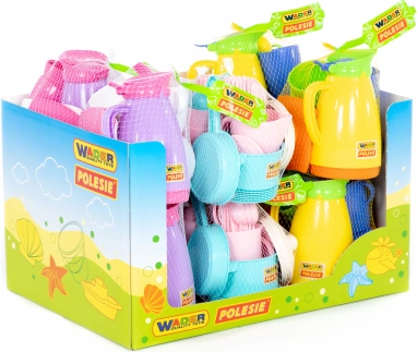 - Color set with teapot: teapot, 4 cups, 4 saucers, 4 spoons, sugar bowl, milk jug