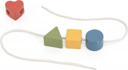 Shape puzzles, bolts with nuts, and lacing shapes practice fine motor skills, logic, and train distinguishing shapes and colors in a fun way.