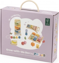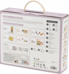 Safe wooden construction with smooth edges and pastel colors invite exploration, training patience, focus, and logical thinking. The set is a great gift and a perfect start to meaningful Montessori-inspired activities.