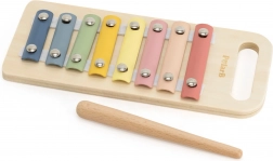 The pastel wooden xylophone introduces children to the world of tones, develops auditory perception and rhythm, and supports hand–eye coordination when striking with the mallet.