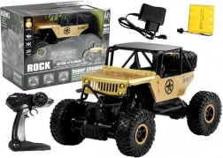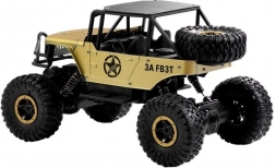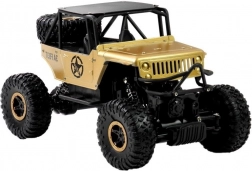 The gold 1:18 scale remote-controlled car offers great fun for kids aged 3+. It stands out with features like 4x4 drive, shock absorption, and a Twist function for driving in challenging terrain. The car is powered by rechargeable batteries, reducing operating costs, and is controlled via a 2.4 GHz remote for a stable connection.