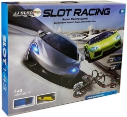Enjoy adrenaline-fueled racing on a long track with a length of up to 1020 cm. The set includes 2 cars in 1:43 scale, 2 handheld controllers, and power supply. Two loops, sharp turns, and illuminated headlights on the cars deliver realistic, exciting fun for kids from 6 years and adults alike.