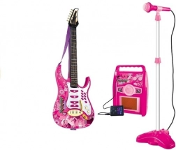 Pink electric guitar with microphone and amplifier is the ideal toy for young musicians. It is made from quality material and features touch-sensitive metal strings that mimic a real guitar.