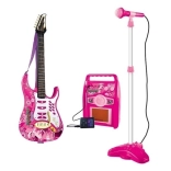 This electric guitar is designed for children who love music and want to become rock stars. With its composition and included components like the microphone, amplifier, and adjustable stand, it is fully ready for musical performances.