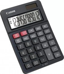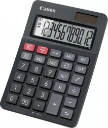The Canon AS-120 II is a compact and practical 12-digit desktop calculator with a vertically angled display, ideal for office use. It offers margin, correction, and grand total memory functions to simplify complex calculations. This calculator is also eco-friendly—some of its parts are made from Canon recycled materials.