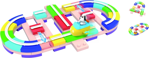 A fun race track for kids featuring a 118 cm long track, 82 building pieces, and moving elements for hours of creative play. Includes a cart with 2 speed modes, a puppy figurine, and suction cups f... Show more