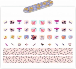 - Set contents: 30 nail stickers, 10 smaller stickers, 1 strip of patterns to cut out, 1 nail file.