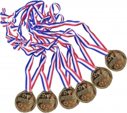 Give every little winner the joy of victory. Gold medals with the WINNER inscription and stars look representative while being safe and lightweight thanks to PVC material. The tricolor ribbon makes them comfortable to wear and easy to hand out at competitions or events.