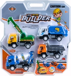 A set of four fun vehicles that will captivate any construction machinery fan. Colorful and robust construction ensures safety even for the youngest children. Due to their small dimensions, they are ideal for small children's hands and can be easily transported for walks or to kindergarten.
