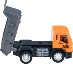 Each vehicle is equipped with movable elements (e.g., a tilting bed and opening doors) and is powered by a Friction power mechanism, meaning they can be launched with a gentle sweep on a smooth surface.