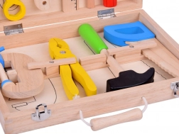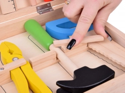This wooden tool set is designed to fit small hands perfectly and motivate children to actively explore the world of fixing and creating. Thanks to realistic yet safe shapes, kids playfully get to know how a hammer, saw, screwdriver, or wrenches work.