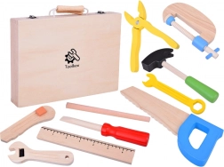 The set includes a ruler with a scale that encourages learning numbers and estimating distances during making and fixing.