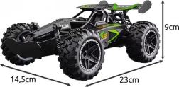 Get ready for unlimited fun with this high-speed racing car, equipped with a durable build for dynamic driving that can handle demanding terrain. The car is designed to deliver a smooth and stable ride thanks to its shock absorbers and large rubber wheels, making it ideal for grass, gravel, asphalt, or even light sandy surfaces.