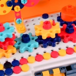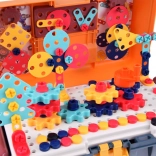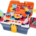 This richly equipped set for young makers turns any room into a creative workshop. The lockable case doubles as practical storage and a work surface—the perforated board enables firm attachment of screws, nuts, and pieces, making it easy for kids to assemble cars, helicopters, animals, and moving constructions with gears.