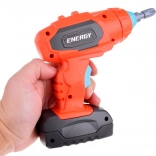 A lightweight battery-powered screwdriver with attachments mimics real tools and motivates kids to screw independently.