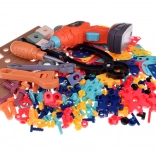The kids’ battery drill/screwdriver, manual screwdriver, wrenches, and pliers support realistic role play, while the colorful pieces guide children to explore shapes, patterns, and basic mechanics. An inspiration booklet with build ideas is included.