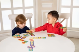 The game rules are flexible, allowing you to create your own game variants that will entertain every age group. The game starts with players dealing the cards. If someone has a double card, they start the game. If not, cards are drawn from the bank until the first double card is found.