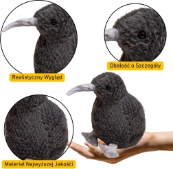 This plush kiwi in elegant black is designed with attention to detail—the long beak, short legs, and soft surface create a faithful likeness of this unique bird. Thanks to its compact 17 cm height, it fits easily in a child’s hand and becomes a favorite companion for play and sleep.
