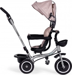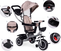 The ECOTOYS tricycle combines a stroller and a balance trike in one. Thanks to the swivel seat, your child can ride facing the parent or forward. The parent handle is connected to the handlebars, so you have full control of the direction while your child relaxes on the folding footrests.