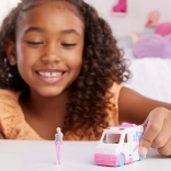 This mini ambulance inspired by the world of BARBIE brings big fun in a small package. When opened, the vehicle transforms into a tiny clinic where the mini doll can care for patients, sit on the swivel seat, and create her own rescue stories. Thanks to its compact size, the set is perfect for home and travel.
